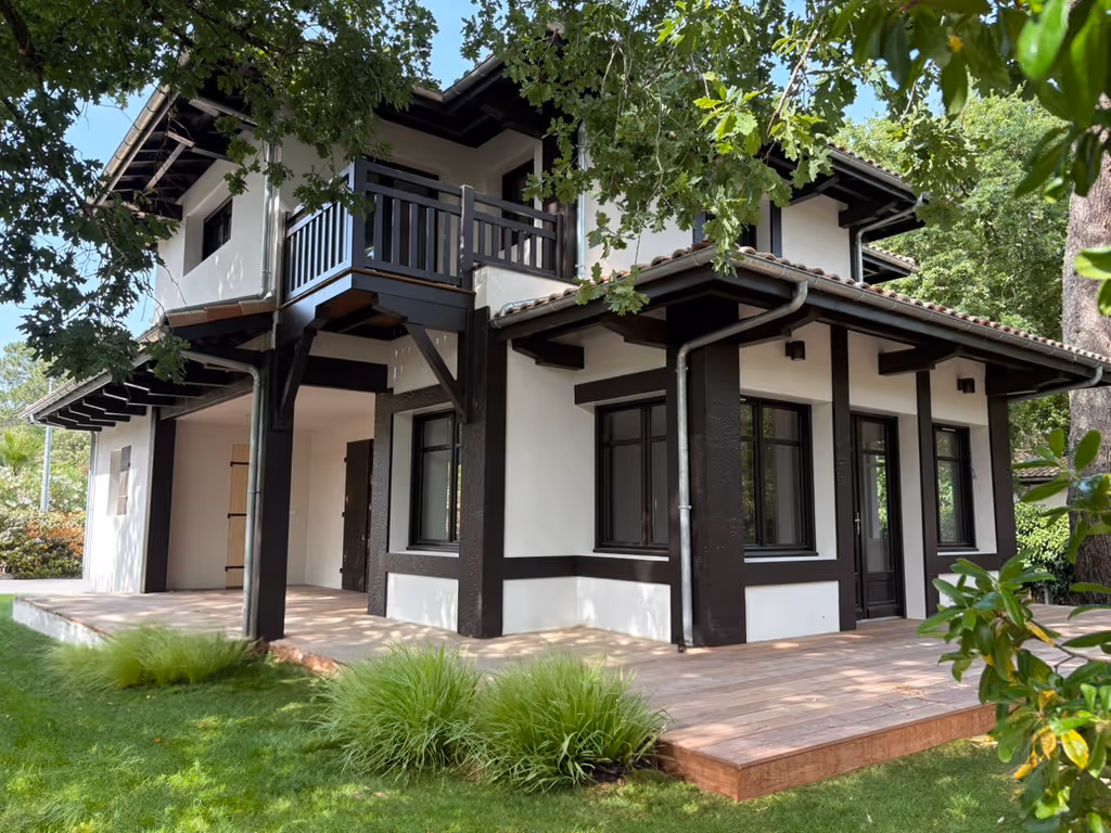 Située sur le premier flanc de dune, dans le quartier du Domaine de la Forêt, cette habitation néo-basque des années 50, œuvre du bâtisseur Gaume, incarne la tradition locale.