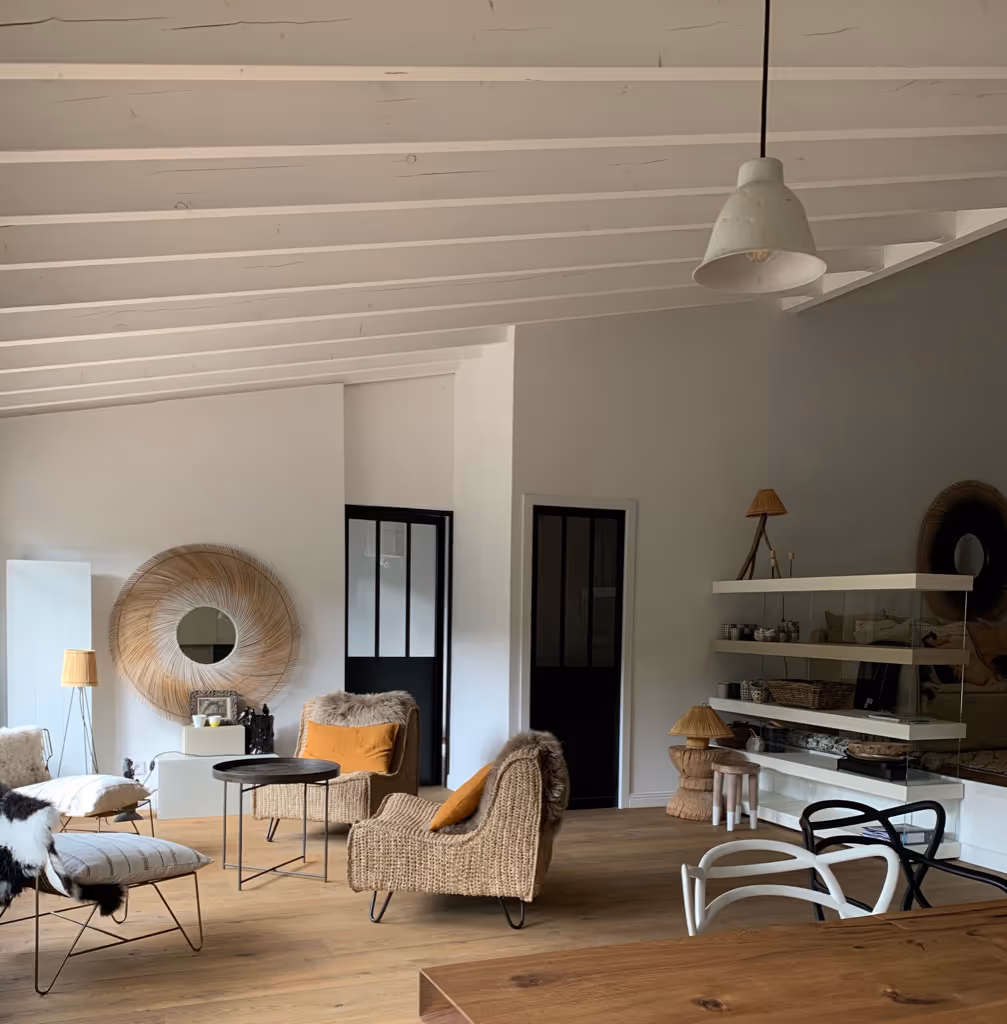 Mise en valeur de la charpente traditionnelle et des volumes en toitures Aménagement d’une terrasse extérieur sur l’arrière pour garder l’intimité et créer une parenthèse végétale dans un milieu urbain dense.